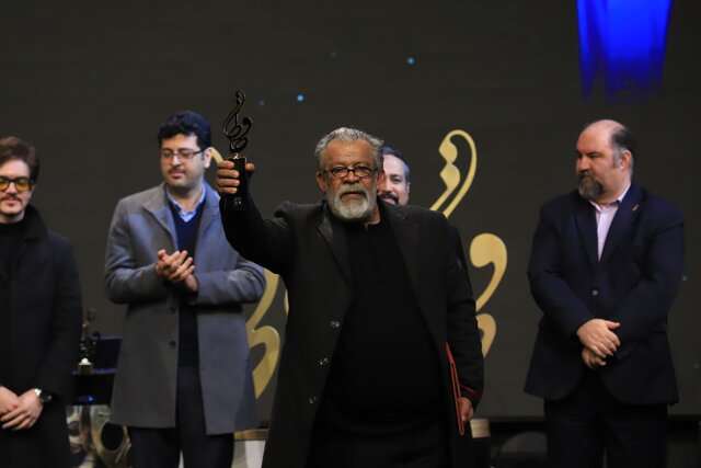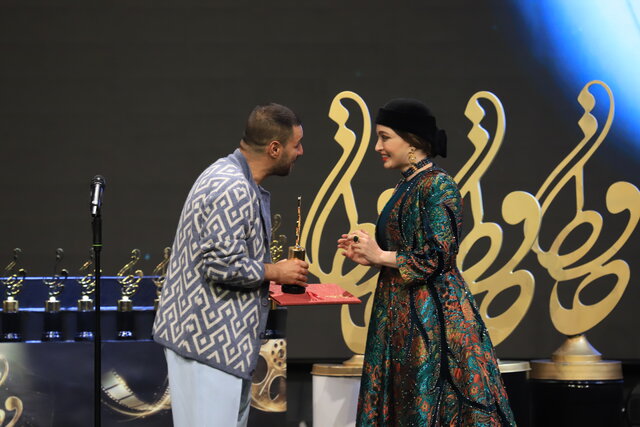 حسین توتونچیان ،تهیه کننده موسیقی،برای اهدای جایزه بهترین خواننده تیتراژ به روی سن دعوت شد.
