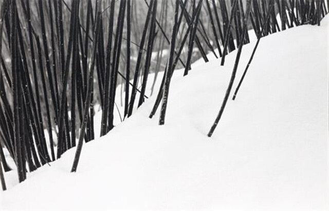 برای مثال می‌توانیم به سراغ مجموعه «درخت و کلاغ» برویم. تصاویر این مجموعه اغلب کادرهایی بسته‌شده از تنه‌های درختان یا سایه‌های آنهاست که با یک عنصر تکمیل‌کننده یعنی کلاغ، در یک قاب قرار گرفته‌اند. وجود کوچک کلاغ بر روی زمین یا شاخه‌های درختان، عمیقا درختان تنومند در تصویر را تحت شعاع قرار داده است.