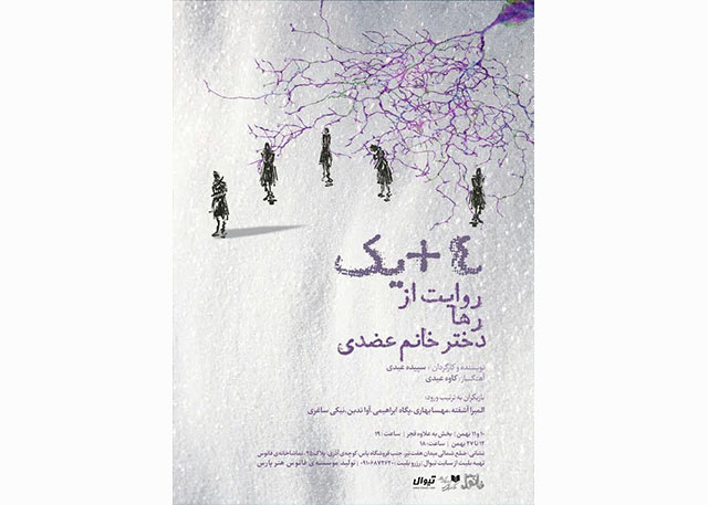 نمایش« ۴+یک روايت از رها دختر خانم عضدي» به کارگردانی ونویسندگی «سپيده عیدی» توليد موسسه فانوس هنر پارس از 10 بهمن ماه در سی وپنجمین جشنواره تئاتر فجر به روی صحنه تماشاخانه فانوس می رود.